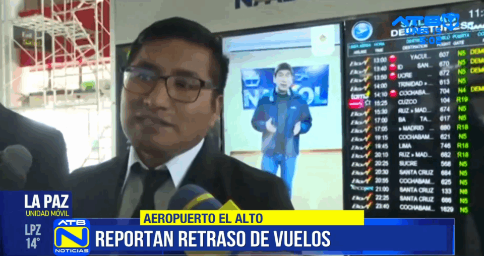 La Paz, 15 de sep 2025 (ATB Digital) .- El administrador regional de NAABOL La Paz, David Pillco, informó que dos vuelos sufrieron demoras este lunes en el aeropuerto internacional de El Alto. El retraso, que afectó a vuelos de BOA y TAM, se debió a un corto circuito registrado en Viru Viru, generando quejas de los usuarios que esperaban desde las 7 de la mañana.