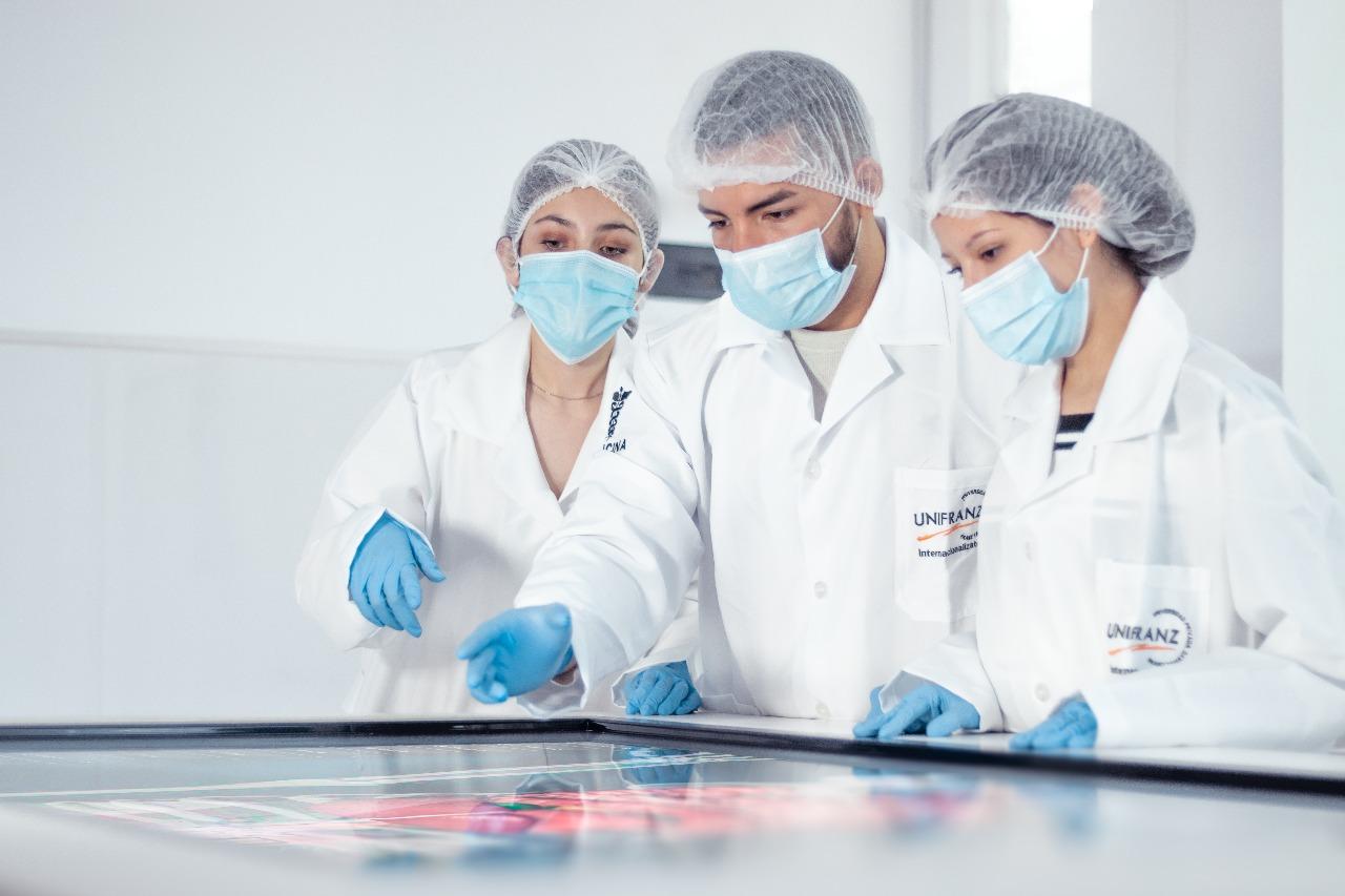No sólo eso. La carrera de Medicina en Unifranz cuenta con una de las infraestructuras más completas del país, diseñada para responder a los más altos estándares internacionales. Sus estudiantes acceden a laboratorios de anatomía con tecnología de simulación, salas de habilidades clínicas, modernos equipos biomédicos y un hospital universitario donde se llevan a cabo prácticas supervisadas. Estos espacios garantizan una formación práctica, segura y actualizada, que prepara a los futuros médicos para enfrentar los retos de la salud con conocimiento y confianza.