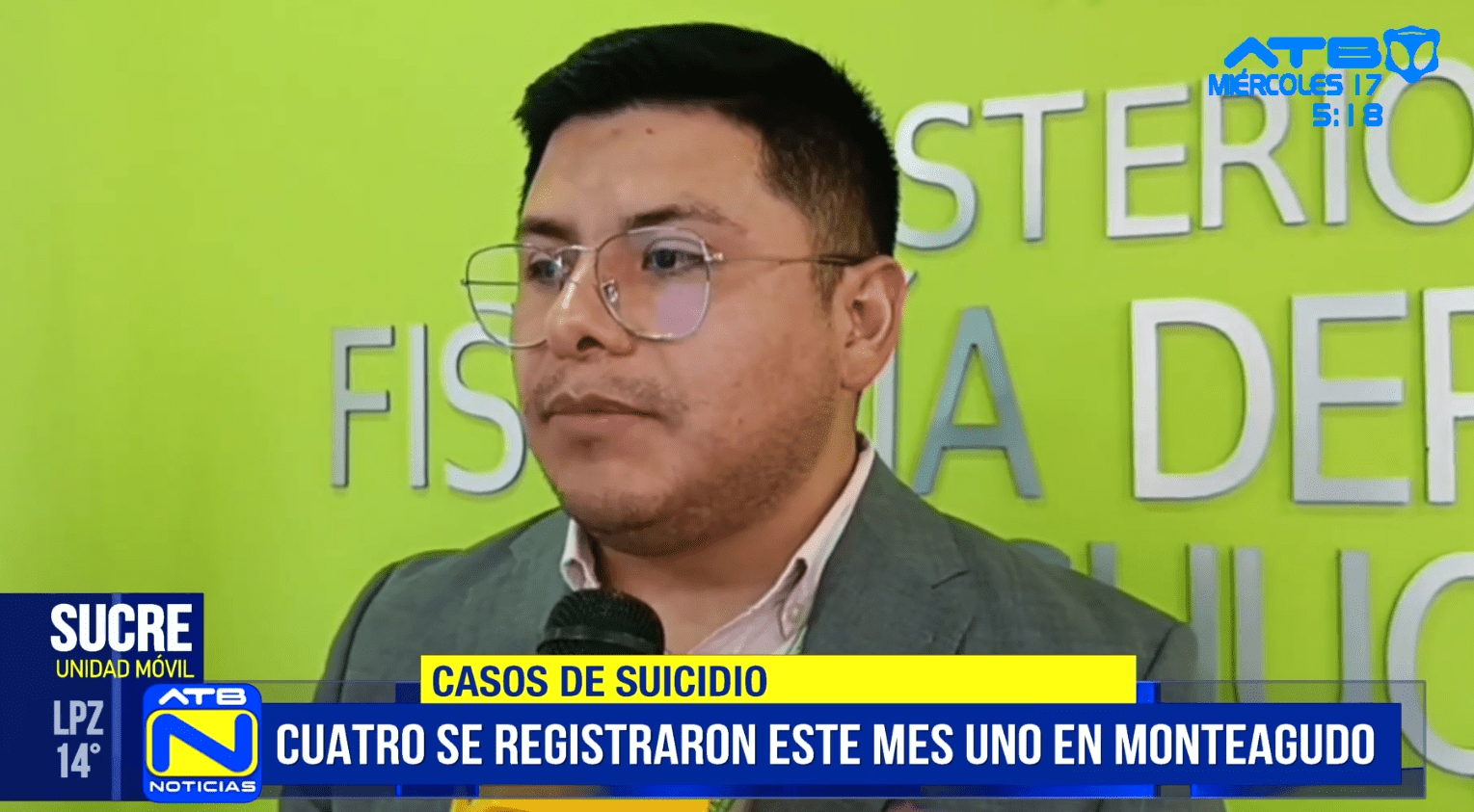 Chuquisaca, 17 de sep 2025 (ATB Digital)-. La Fiscalía de Chuquisaca informó que en lo que va del año se registraron 15 casos de suicidio, de los cuales cuatro ocurrieron en septiembre. Uno de ellos corresponde a un adolescente de 14 años en Monteagudo, hallado sin vida en su cama junto a una carta en la que relataba problemas familiares y personales. El fiscal Mario Durán señaló que habría ingerido una sustancia química, cuya naturaleza aún se investiga. Las autoridades recomiendan a la población acudir a instancias gratuitas de apoyo psicológico para prevenir más casos.