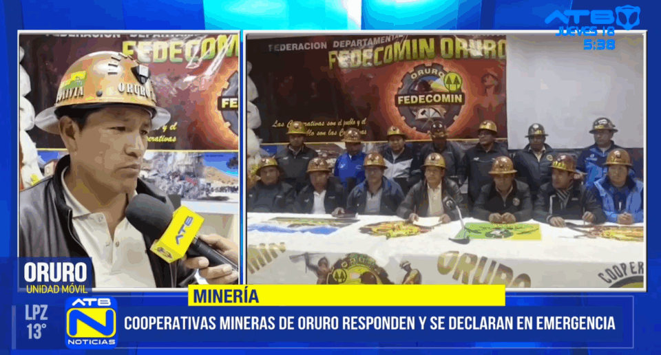 Oruro, 18 de sep 2025 (ATB Digital)-. Fidel Copa, presidente de la Fedecomin Oruro, informó que las cooperativas mineras no reciben beneficios del Estado, mientras que la empresa estatal cuenta con bonos, aguinaldos, subsidios y implementos de trabajo. Ante la situación, se convocó a una reunión con la Federación Departamental de Oruro para debatir los comentarios negativos hacia el sistema cooperativo minero, promoviendo el diálogo y evitando confrontaciones entre los trabajadores del sector.
