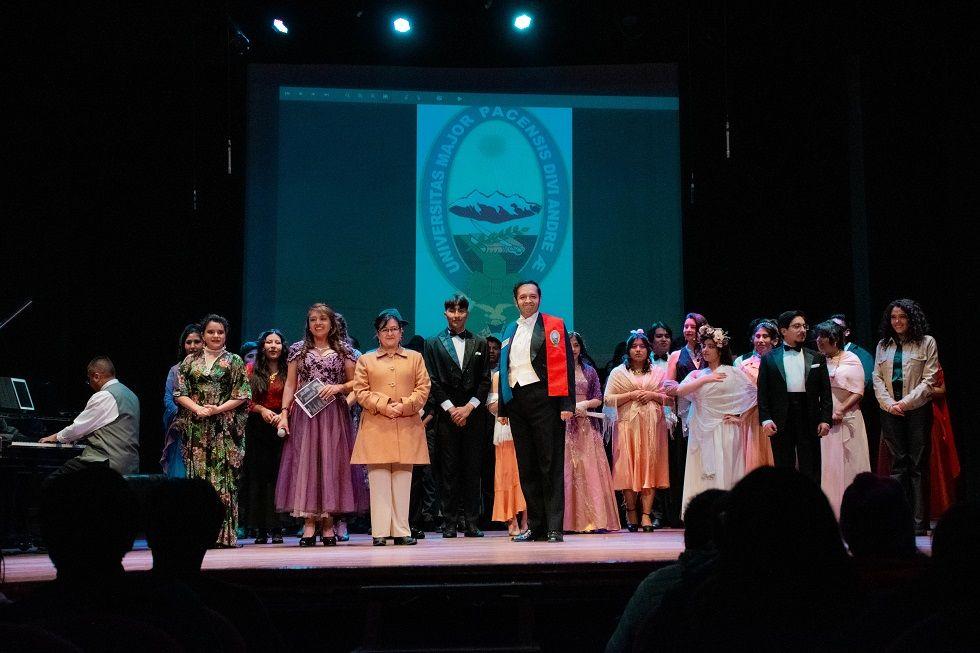 “Para nosotros, como División de Cultura y Artes, es un placer visitar un escenario tan importante como el Teatro Gran Mariscal de la hermosa ciudad de Sucre y sobretodo llevar una obra tan importante con casi 90 jóvenes universitarios de las 13 facultades de nuestra Casa de Estudios Superiores, quienes son parte del Ballet Folklórico y el Coro Universitario Mayor de San Andrés”, aseveró la jefa de la división de Cultura y Artes de la UMSA, Melissa Herrera León.