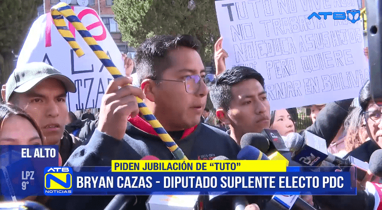La Paz, 23 de sep 2025 (ATB Digital).- Un grupo de jóvenes afines a Edman Lara, candidato a la vicepresidencia por el PDC, llegó hasta la Alcaldía Quemada de El Alto para entregar de forma simbólica un bastón a Jorge “Tuto” Quiroga. Con esta acción pidieron que el exmandatario se jubile de la política y dé paso a nuevas generaciones, argumentando que “no conoce la realidad actual del país”.