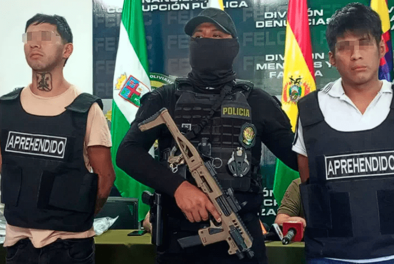 “Se ha logrado la aprehensión de dos individuos, uno de ellos identificado como Junior A.S y el otro Fernando A. en la zona de los Pozos a horas 17.00 del día de ayer (jueves) en inmediaciones de esa zona”, señaló el director de la FELCC, coronel Gustavo Astilla.