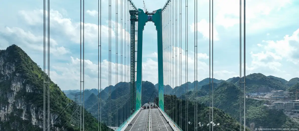 El Puente del Gran Cañón de Huajiang se ubica 625 metros sobre un río y un amplio desfiladero en la provincia sureña de Guizhou, donde también está el Puente de Beipanjiang, de 565 metros de altura, relegado ahora a ser el segundo más alto del mundo.