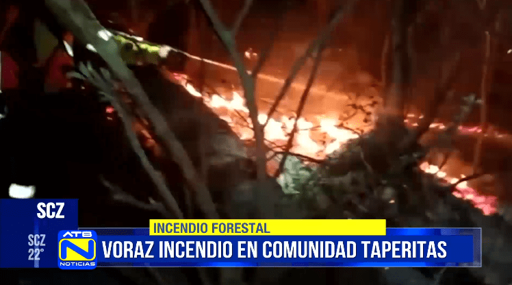 La Paz, 01 de oct 2025 (ATB Digital).- Un voraz incendio forestal en San José de Chiquitos, Santa Cruz, amenaza con llegar hasta una comunidad menonita. Brigadas de bomberos voluntarios trabajan intensamente para controlar las llamas, que ya consumieron gran parte de la vegetación en la zona.