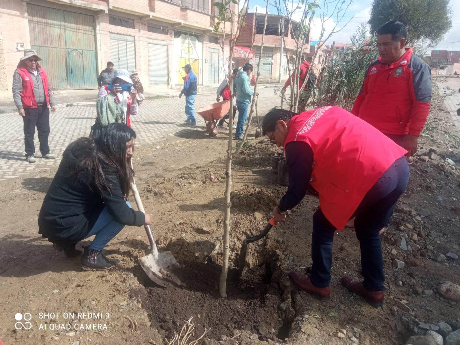 La actividad contó con la participación activa de ejecutivos del Distrito 14, vecinos y estudiantes de la Unidad Educativa «Kollasuyo», quienes unieron esfuerzos para plantar 300 arbolitos en la avenida Simón Bolívar, una vía que mejorará la calidad de vida de centenares de vecinos de ese sector de la ciudad.