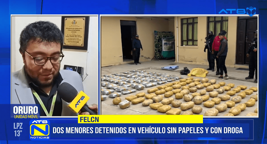 Oruro, 02 de oct 2025 (ATB Digital)-. En un operativo realizado por la Fuerza Especial de Lucha Contra el Narcotráfico (FELCN) en Oruro, dos gemelos de 15 años fueron sorprendidos transportando paquetes de marihuana en un vehículo indocumentado. Junto a ellos también fueron arrestadas dos personas adultas, quienes presentaron contradicciones durante el control. El fiscal antinarcóticos, Alexander Casanova, informó que tras la verificación se hallaron varios paquetes envueltos en cinta, confirmándose mediante pruebas de campo que contenían marihuana. Los adultos fueron remitidos al órgano jurisdiccional para su aprehensión, mientras que los adolescentes fueron derivados a la fiscalía especializada en justicia penal juvenil. Además, se evidenció que ambos grupos mantenían comunicación previa sobre los controles policiales y que los vehículos no contaban con documentación legal.