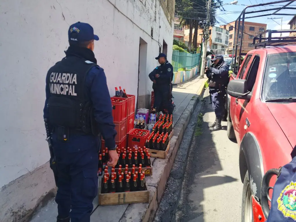“El reporte de la Dirección de Seguridad Ciudadana señala que personal de la Intendencia Municipal decomisó latas de alcohol, botellas de singani y whisky con bastante antigüedad. Uniformados de la Guardia Municipal desalojaron a las personas que se encontraban al interior del bar y los bidones de licores preparados artesanalmente fueron desechados”, se detalló.