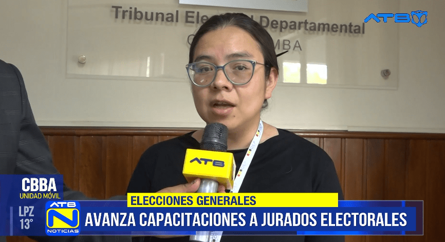 Cochabamba, 06 de oct 2025 (ATB Digital)-. A 13 días de las elecciones de segunda vuelta, el Tribunal Electoral Departamental de Cochabamba continúa con su cronograma de capacitaciones para jurados electorales. La presidenta Ruth Pontejo informó que la formación se extenderá hasta el 18 de octubre, un día antes de los comicios. Esta semana iniciará la capacitación en zonas metropolitanas como Sacaba y Quillacollo, así como en áreas dispersas para cubrir todos los recintos. Más de 8.000 jurados recibirán formación sobre procedimientos electorales y su rol el día de la votación. Además, ya se completó la entrega de papeletas y material electoral, que pasará por control de calidad antes del armado de las maletas electorales.