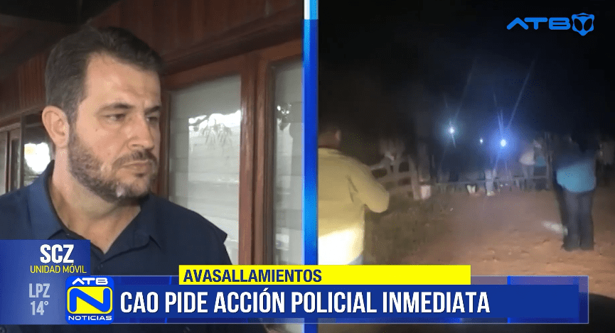 Santa Cruz, 06 de oct 2025 (ATB Digital)-. La Cámara Agropecuaria del Oriente, a través de su vicepresidente Yamil Nacif, pidió a la Fiscalía y la Policía actuar con urgencia ante nuevos hechos de avasallamiento y secuestro ocurridos en Guarayos, donde se reporta la pérdida de más de 130 cabezas de ganado. Nacif afirmó que las tierras fiscales pertenecen a todos los bolivianos y calificó a los avasalladores como delincuentes, exigiendo su desalojo inmediato y la protección de las familias afectadas, denunciando además el uso de armas de alto calibre en estos hechos ilegales.