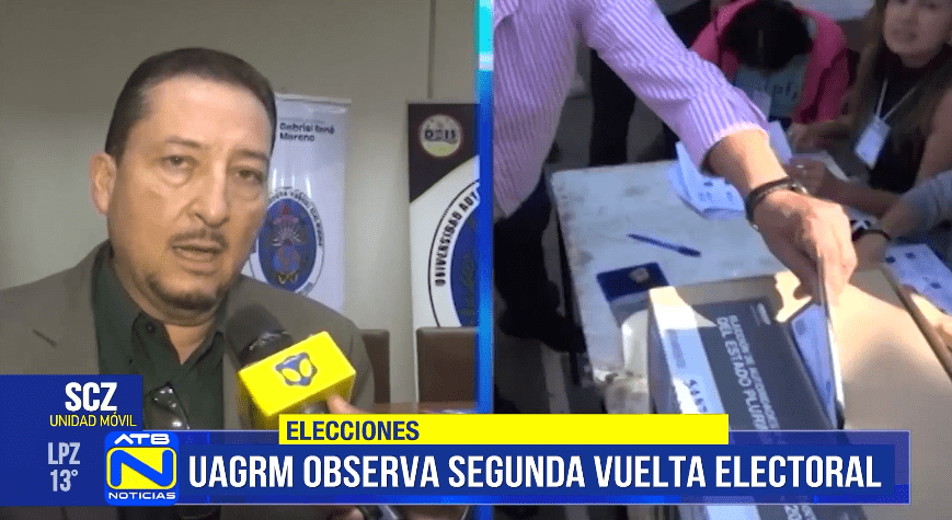 Santa Cruz, 07 de oct 2025 (ATB Digital)-. El jefe de Relaciones Públicas de la Universidad Autónoma Gabriel René Moreno, Manfredo Bravo, informó que la institución fue acreditada por el Tribunal Supremo Electoral como misión de observación para el proceso del 19 de octubre. Bravo aclaró que la UAGRM no realiza control de votos, sino seguimiento al desarrollo del proceso electoral conforme a las normas y procedimientos vigentes. Recordó que en la anterior elección participaron más de 27 mil estudiantes, docentes y administrativos en todo el departamento, quienes reportaron observaciones sobre errores en el llenado de actas y falta de capacitación de jurados, aspectos que esperan no se repitan en esta segunda vuelta.