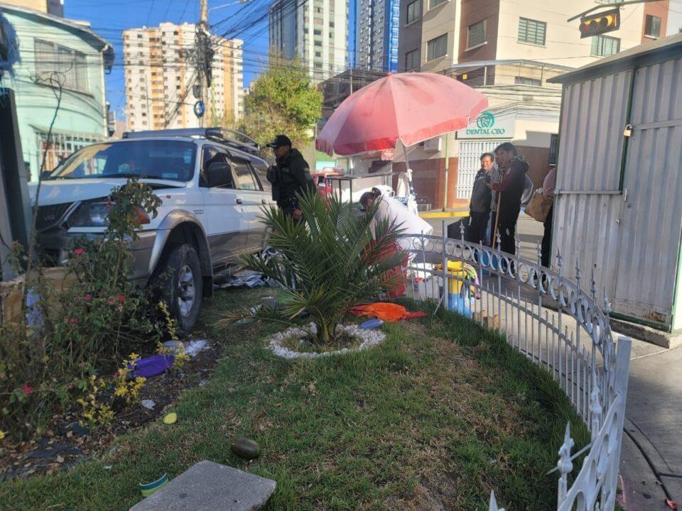 La Paz, 11 de oct 2025 (ATB Digital).– La mañana del 11 de octubre se registró un accidente de tránsito en la intersección de las calles Villalobos y República de Cuba, donde un motorizado impactó contra un puesto de comida en el que se encontraba una mujer.
