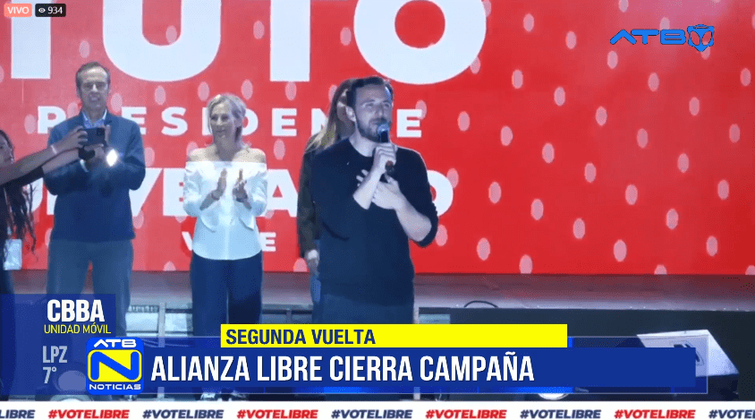 Cochabamba, 13 de oct 2025 (ATB Digital).- La Alianza Libre realizó su cierre de campaña en el departamento de Cochabamba, donde su candidato a la vicepresidencia, Juan Pablo Velasco, destacó la necesidad de trabajar por la unidad nacional.