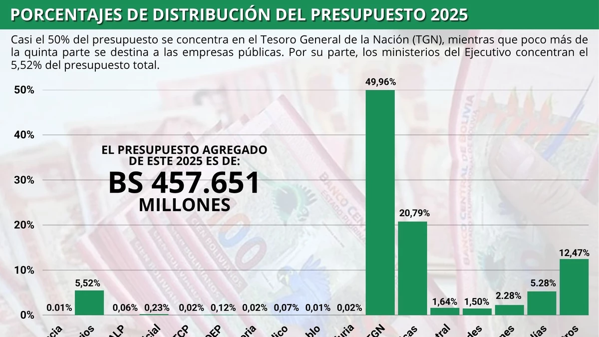 La Paz, 13 de oct 2025 (ATB Digital) .- Ya en el segundo semestre del año, el presupuesto agregado para el 2025, ajustado a Bs 457.651 millones tras un incremento sobre el monto inicial de Bs 369.340 millones, registra una ejecución del 37,94% (Bs 173.626 millones) al 31 de julio, según datos oficiales. Expertos señalan que este nivel, significativamente por debajo del 50% esperado para esa etapa del año, revela una combinación de falta de liquidez, ineficiencias administrativas y una priorización del gasto corriente sobre la inversión pública.
