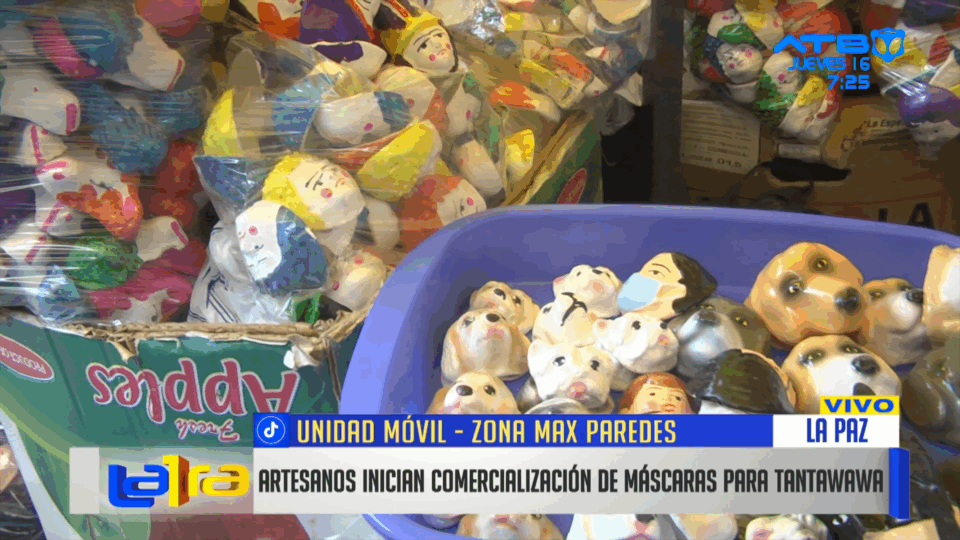 La Paz, 16 de oct 2025 (ATB Digital).- Desde la Max Paredes, artesanos locales iniciaron la comercialización de máscaras, caretitas, caballos y otras figuras utilizadas en la tradición de las Tantawawas. Con productos de distintos tamaños y estilos, los artesanos invitan a la población a adquirir estas piezas únicas, que además se exportan a diferentes partes del mundo, llevando la tradición paceña más allá de las fronteras.