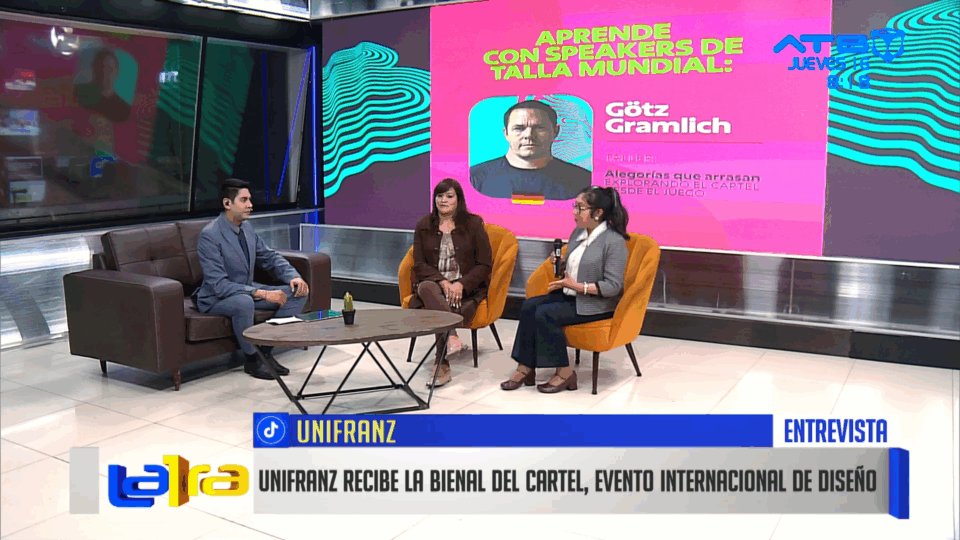 La Paz, 16 de oct 2025 (ATB Digital).- La Universidad Franz Tamayo (Unifranz) recibió con entusiasmo la Bienal Internacional de Cartel y Diseño 2025 (BICEBÉ). La directora de la carrera de Diseño Gráfico y Producción Crossmedia y una estudiante participante representarán a la institución con un cartel que competirá a nivel internacional, destacando el talento y la creatividad boliviana en el ámbito del diseño.
