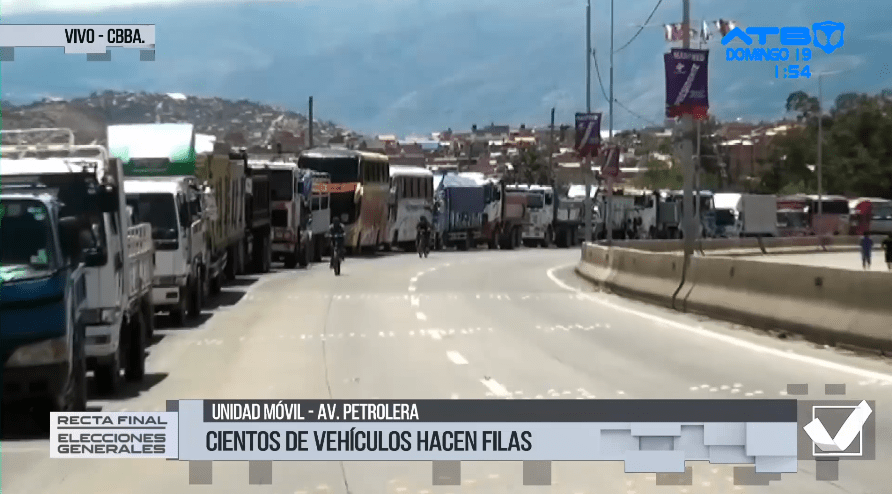 Filas de camiones en Cochabamba por escasez de diésel afectan votación