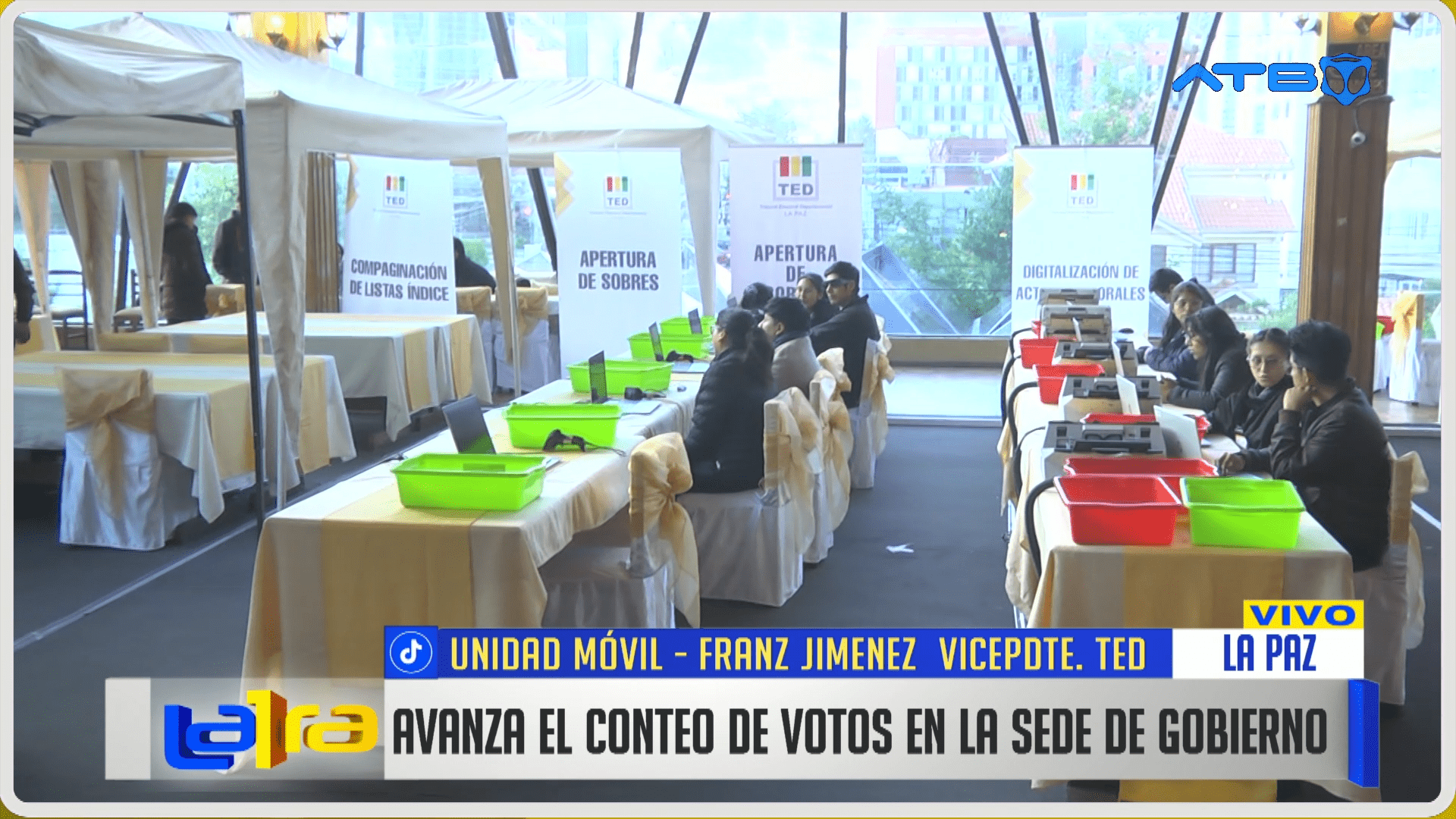 La Paz, 21 de oct 2025 (ATB Digital).- Desde el Centro de Cómputo de La Paz, el conteo avanza con cerca del 80% de actas revisadas. Se prevé que los resultados finales se conozcan hasta mañana, tras completar todos los monitoreos.
