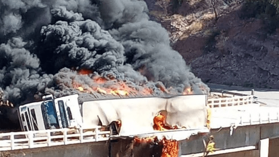 Un tráiler que realizaba el trayecto Tarija–La Paz volcó de costado la tarde de este lunes y posteriormente se incendió en el puente Sarcarca, dejando como saldo la pérdida total del vehículo y leves heridas en el conductor.