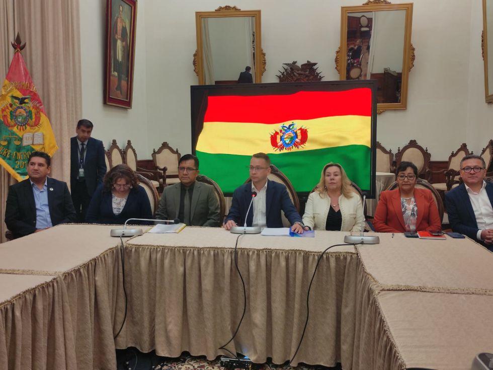 Siete de los nueve magistrados –sin la presencia de los dos que se mantienen en el cargo por la ampliación de mandato indefinido dispuesta por el Tribunal Constitucional Plurinacional (TCP)– dieron este martes una conferencia de prensa para hacer conocer la determinación de la Sala Plena de convocar a un ‘Diálogo Interinstitucional para Reformar la Justicia’, cuya finalidad es fortalecer el sistema judicial y acercarlo a las necesidades de la ciudadanía.