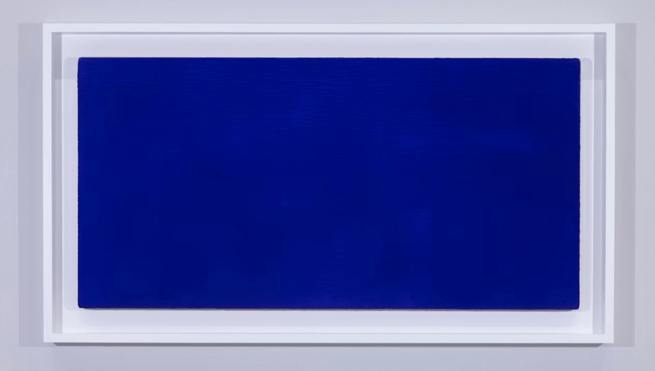 La obra de Klein es casi exclusivamente monocromática, y en sus últimos años solo utilizaba un color, el Azul Klein Internacional (IKB), nombre con el que patentó la pintura espesa de un tono ultramar, mezcla de resina sintética, mate y pigmento. Son más de 200 sus trabajos en azul.