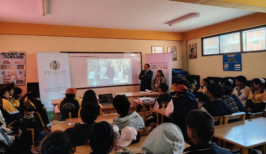 La Paz, 26 de oct 2025 (ATB Digital) .- En El Alto funcionarios de la Fiscalía socializaron el contenido y alcances de la Ley 1636 para la protección de la integridad sexual de niñas, niños y adolescentes en entornos digitales y prevenir los peligros de las redes sociales entre estudiantes de secundaria.