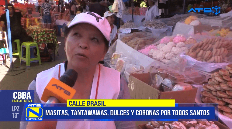 Cochabamba, 28 de oct 2025 (ATB Digital)-. En la calle Brasil, al lado sur del mercado Calatayud de Cochabamba, se instaló desde este martes la tradicional feria de Todos Santos. Los comerciantes ofrecen una amplia variedad de masitas y productos para armar los mastakus, aunque reportan un incremento en los precios debido al alza de los insumos y del diésel.