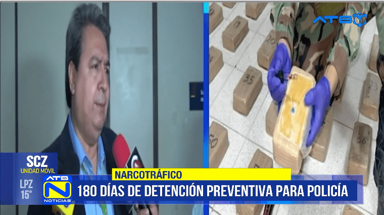 Santa Cruz, 31 de oct 2025 (ATB Digital)-. Un juez determinó la detención preventiva por 180 días para un oficial de la Policía Boliviana y un civil, implicados en el transporte de 150 paquetes de pasta base de cocaína. El fiscal Julio César Porras informó que ambos fueron cautelados y permanecerán recluidos mientras continúan las investigaciones del caso.