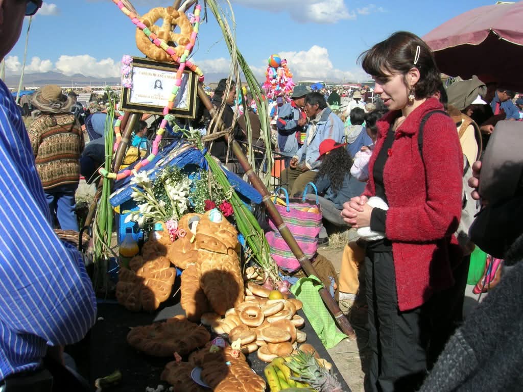 El 1 y 2 de noviembre de cada año se celebra en Bolivia Todos Santos, una festividad que fusiona tradiciones cristianas con creencias andinas. En esta fecha se honra a los seres queridos fallecidos, ya que se cree que sus almas regresan al mundo de los vivos para compartir un banquete en su honor.