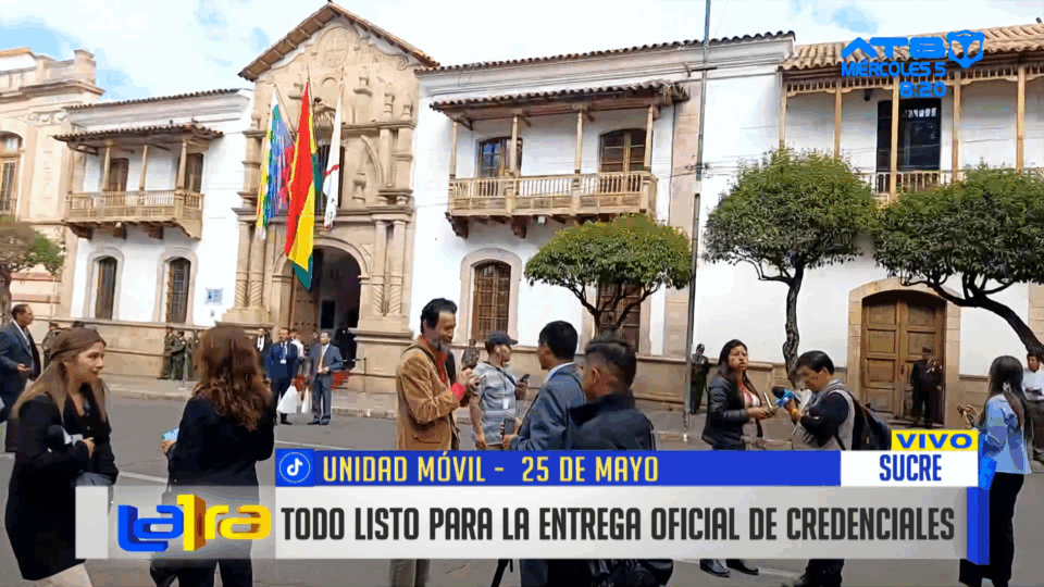 Chuquisaca, 05 de nov 2025 (ATB Digital).- Todo está listo para la entrega oficial de credenciales, mientras invitados y delegaciones comienzan a llegar e ingresar al lugar. Numerosas personas también se han dado cita para presenciar este importante acto que marca una etapa clave en el proceso de transición.