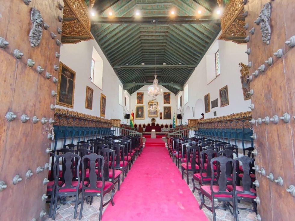 El acto iniciará a las 10:00 con palabras del presidente interino del Tribunal Supremo Electoral (TSE), Óscar Hassenteufel, el organizador de la ceremonia, y culmina con el discurso de Paz. “La relevancia radica en que la entrega de credenciales se desarrollará en la Casa de la Libertad. Es la primera vez en la historia del TSE que este acto se realiza en un lugar tan representativo para Bolivia”, destacó el secretario de Cámara del TSE, Fernando Arteaga, quien se encontraba este martes en Sucre supervisando todos los preparativos.