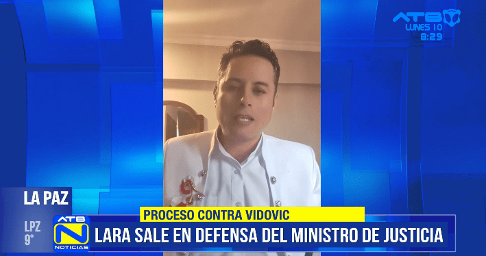 La Paz, 10 de nov 2025 (ATB Digital) .- El vicepresidente del Estado, Edmand Lara, salió en defensa del ministro de Justicia, Freddy Vidovic, y negó que exista una sentencia condenatoria en su contra. Asimismo, denunció que grupos de poder en Santa Cruz buscan influir en la designación de la cartera, proponiendo al abogado Martín Camacho para ocupar ese despacho.