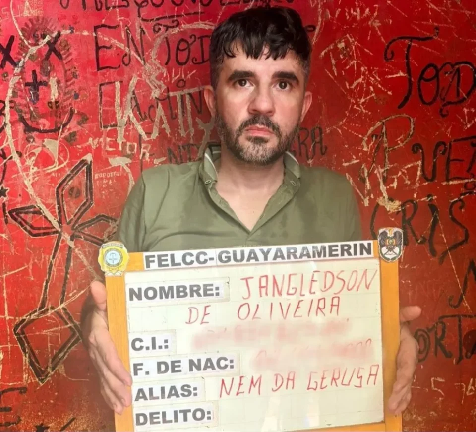 Beni, 15 de nov 2025 (ATB Digital).- En un operativo conjunto entre Bolivia y Brasil se capturó a Jangledson de Oliveira, alias ‘Nem da Gerusa’, considerado uno de los hombres más buscados en Ceará, estado de Brasil, donde le atribuyen hasta 10 asesinatos. Oliveira fue capturado en la ciudad de Guayaramerín, frontera con la región de Guajará-Mirim del estado de Rondonia, Brasil.