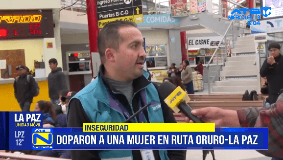 La Paz, 19 de nov 2025 (ATB Digital)-. En La Paz, la Terminal de Buses reportó un nuevo caso de dopaje, sumando ya diez en lo que va del año y dos en el mes. El último hecho ocurrió el domingo, cuando una mujer que llegó desde Oruro con destino a Riberalta fue dopada por otra pasajera durante el viaje, quien posteriormente le robó su dinero.