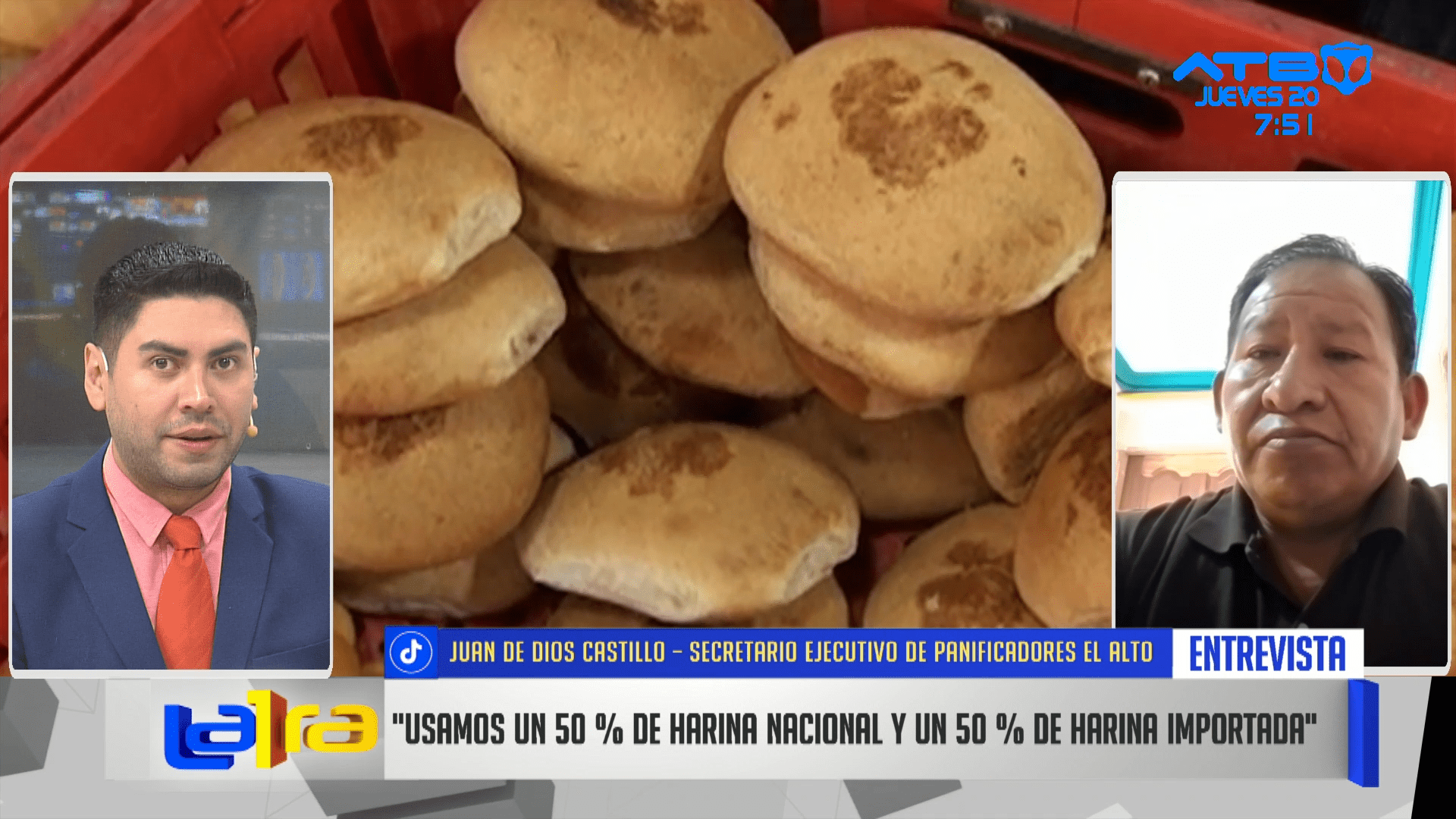 La Paz, 20 de nov 2025 (ATB Digital).- Juan de Dios Castillo, secretario ejecutivo de los panificadores de El Alto, informó que la producción de pan de batalla quedó suspendida debido a la crítica situación en el suministro de harina. El sector se declaró en estado de emergencia, señalando que trabajan con “50% de harina nacional y 50% de harina importada”, lo que ha complicado mantener los niveles de producción.