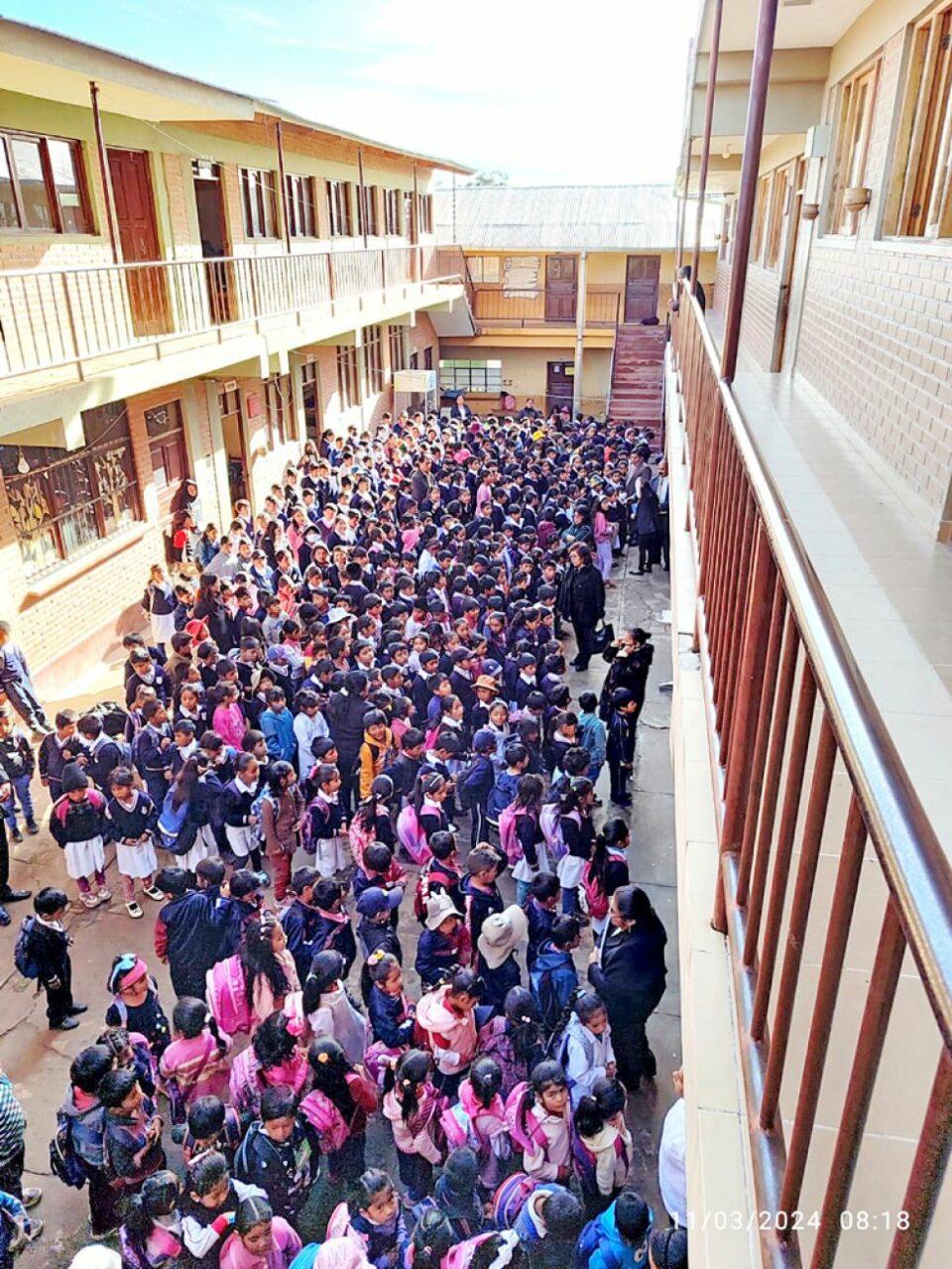 Mamani dijo que la unidad educativa solo cuenta con un patio de 200 metros cuadrados donde los más de 650 estudiantes de los niveles inicial y primario forman todos los lunes y salen a su recreo.
