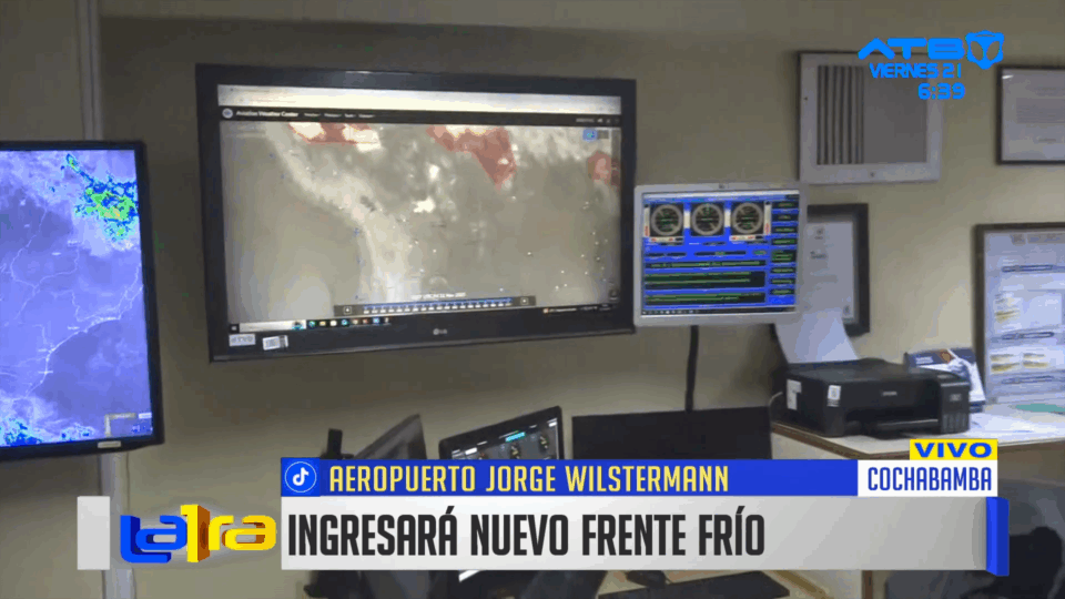 Cochabamba, 21 de nov 2025 (ATB Digital).- Desde el aeropuerto Jorge Wilstermann, NAABOL informó que un nuevo frente frío ingresará al país este fin de semana desde el sur. El fenómeno climático afectará principalmente a Santa Cruz y al trópico boliviano, donde se prevé un descenso de temperaturas y posibles cambios en las condiciones atmosféricas.