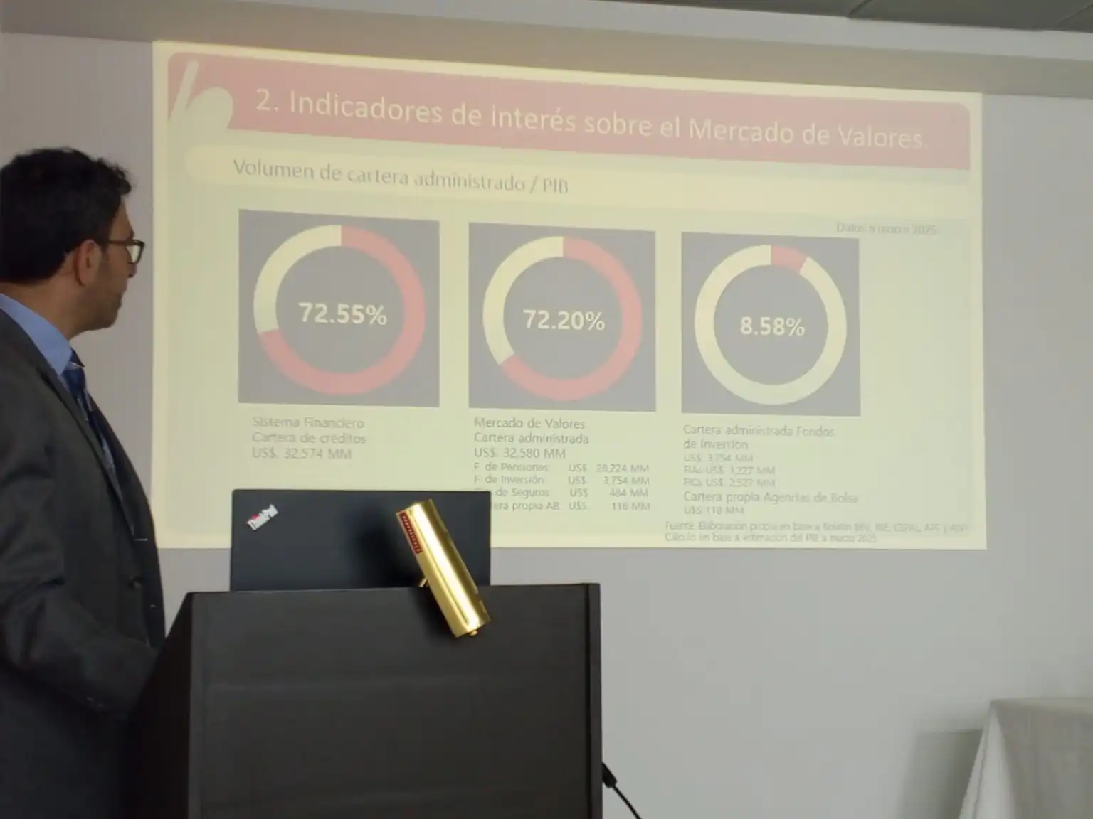 “En el volumen de cartera administrado sobre el PIB (Producto Interno Bruto), nuestro Mercado de Valores en cartera administrada tiene 32.580 millones de dólares. Vale decir que lo que administramos está casi cerca de la cartera de créditos del sistema financiero”, explicó.