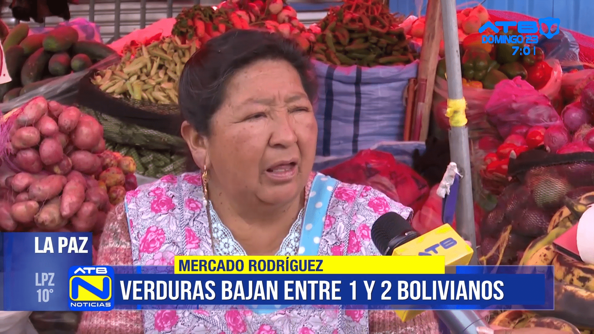 La Paz, 23 de nov 2025 (ATB Digital).- Las comerciantes reportaron una disminución en el precio de verduras, con rebajas de entre Bs 1 y Bs 2 en varios productos. No se registra escasez de alimentos, aunque el precio del tomate se mantiene sin variación.