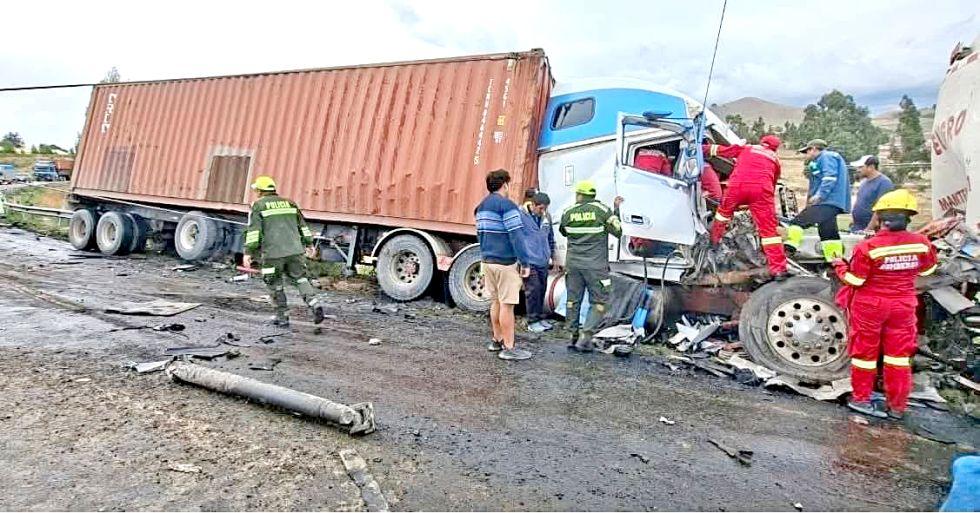 El accidente de tránsito se registró en el kilómetro 26 de Cochabamba con destino a Santa Cruz, indica un reporte preliminar de la Policía. Se conoce que el conductor que quedó atrapado entre los fierros de la cabina es el del tráiler, mientras que el chofer de la cisterna se encuentra estable. El primero resultó gravemente herido, según la Red Uno.