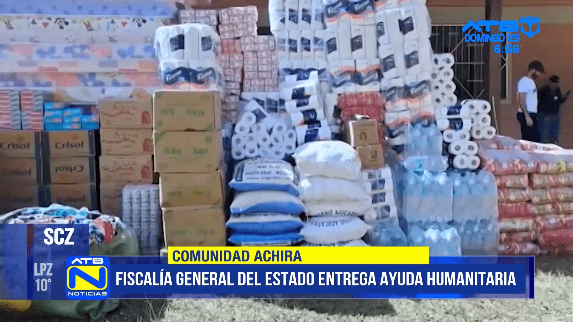 Santa Cruz, 23 de nov 2025 (ATB Digital).- La Fiscalía General del Estado, junto a fiscalías departamentales, llegó hasta la comunidad de Achira, en el departamento de Santa Cruz, con víveres y artículos de primera necesidad para las familias afectadas por los recientes desastres naturales.