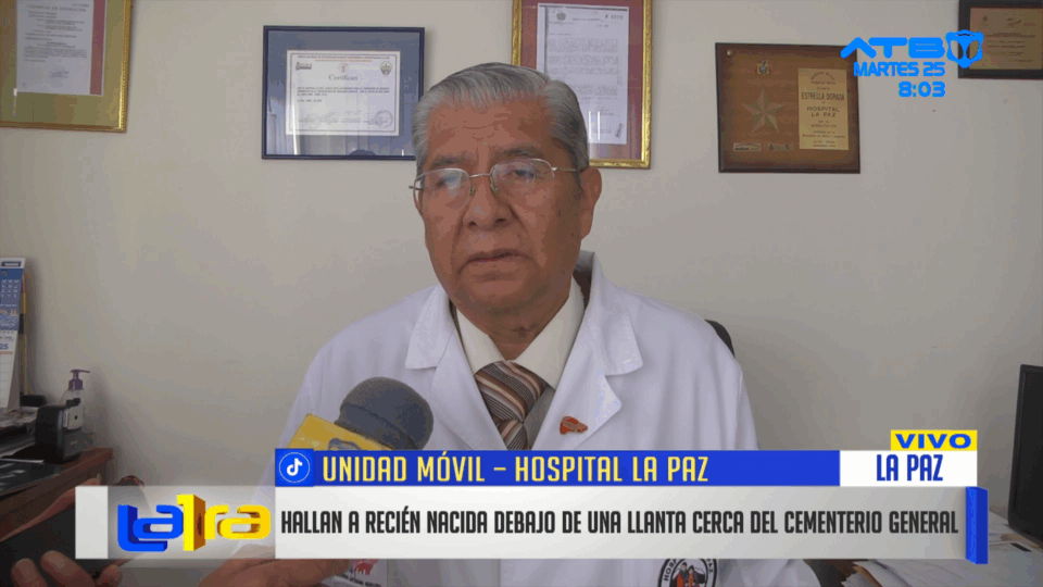La Paz, 25 de nov 2025 (ATB Digital).- La bebé que fue encontrada recién nacida debajo de una llanta en inmediaciones del Cementerio General de La Paz permanece internada en el Hospital La Paz, donde recibe atención médica especializada. Personal de salud informó que la menor se encuentra bajo observación mientras se evalúa su estado general. Las autoridades investigan las circunstancias del abandono y buscan a los responsables, mientras que la Defensoría de la Niñez realiza el seguimiento correspondiente al caso.