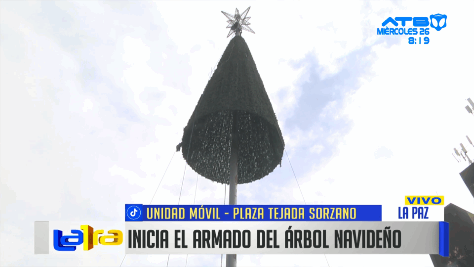 La Paz, 26 de nov 2025 (ATB Digital).- En la Plaza Tejada Sorzano se inicia el montaje del árbol y el pesebre navideño, preparando el espacio para que, como en años anteriores, la plaza se llene del espíritu de la Navidad.