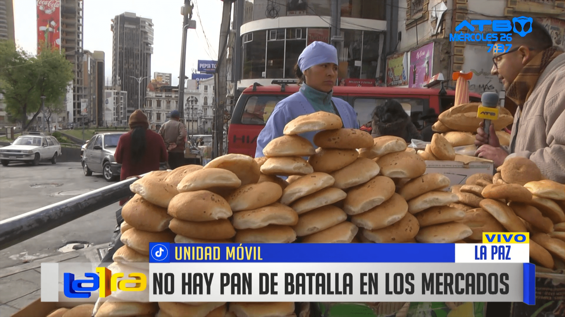 La Paz, 26 de nov 2025 (ATB Digital).- Desde la esquina de la calle Santa Cruz y Figueroa se observa la venta de pan normal, pero el pan de batalla no se encuentra en ningún lugar, ni mercado de la ciudad. Se prevé que la situación se mantenga hasta que se encuentre una solución, la cual podría anunciarse tras la reunión programada para este jueves, con posibilidades de que aumente el precio de este, sin bajar el tamaño.