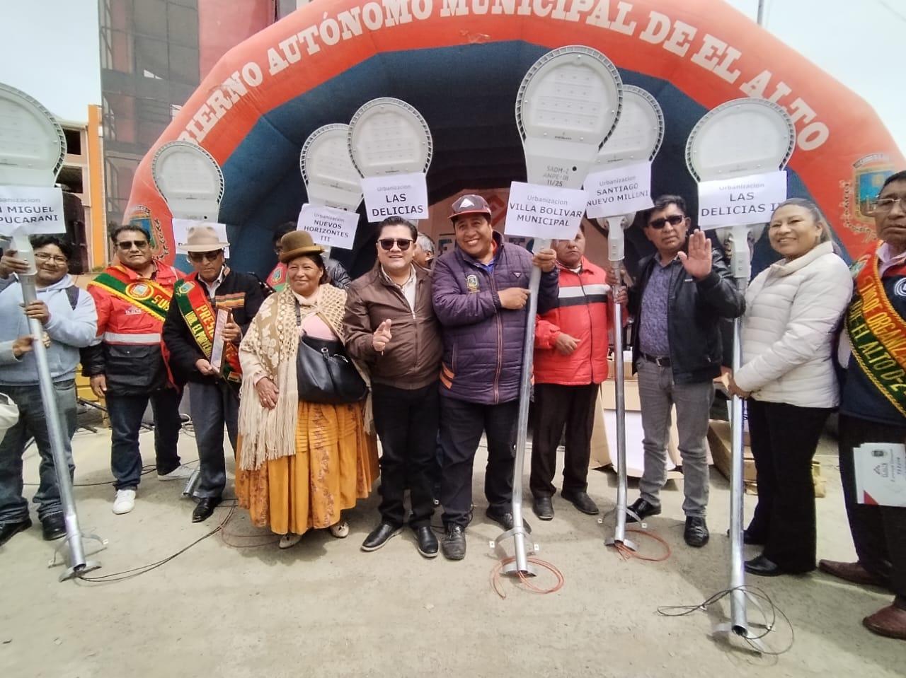 El Alto, 27 de nov 2025 (ATB Digital).- Este miércoles, vecinos del Distrito 2 recibieron 479 luminarias LED de última tecnología que fortalecerán la seguridad ciudadana. Las instalaciones se ejecutarán en tan solo dos días mediante una ink´a distrital, en la cual se movilizarán 15 carros canasta en 11 zonas, en coordinación con las juntas vecinales, anunció el secretario municipal de Gestión Institucional, Rury Balladares, durante el acto de entrega.