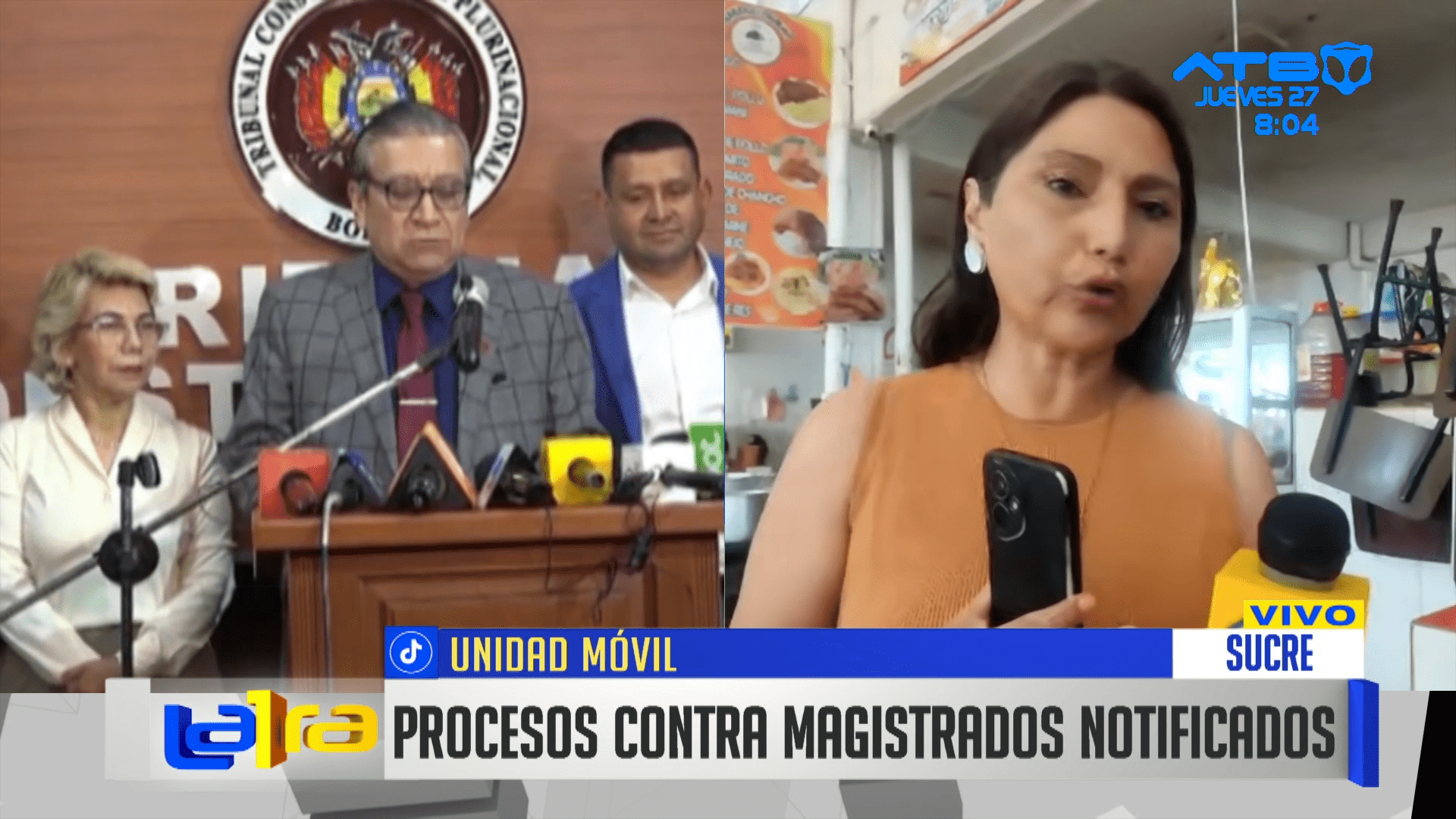 Chuquisaca, 27 de nov 2025 (ATB Digital).- Desde el mercado Central de Sucre, el fiscal general del Estado informó sobre los avances en los dos procesos ordinarios abiertos contra los magistrados que ya cesaron en sus funciones, además del juicio de responsabilidades en la Asamblea Legislativa. Indicó que todos los involucrados fueron notificados para prestar declaraciones y detalló el allanamiento realizado en el Tribunal Constitucional Plurinacional por un caso de presunto acoso político. Asimismo, confirmó que la alerta migratoria continúa vigente mientras avanza la investigación.