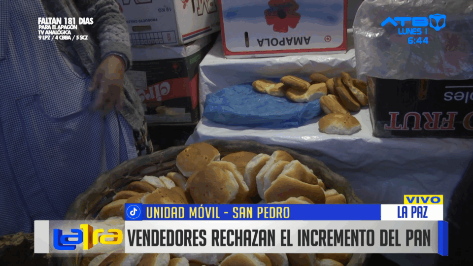 La Paz, 01 de dic 2025 (ATB Digital).- Desde la zona de San Pedro en La Paz, algunos puestos lograron abastecerse con poca cantidad de pan de batalla, mientras que el pan santita es el que predomina en la venta. Ambos se comercializan a 0,80 bolivianos, tal como acordó el sindicato de panificadores. Comerciantes expresan su molestia por el incremento, ya que aseguran que los panes mantienen el mismo peso de antes e incluso vienen más pequeños, afectando a la economía de la población.