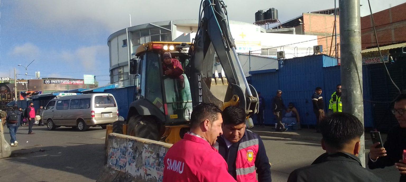 El Alto, 1 de dic 2025 (ATB Digital) .- A pocos días de que la Alcaldía dispusiera el cierre de los giros en U en el Puente Distribuidor de la Ceja, algunos transportistas volvieron a mover los separadores de vía. Por esta razón, este lunes, la Subalcaldía del Distrito 1, en coordinación con la Secretaría Municipal de Movilidad Urbana, desplegó maquinaria para asegurar nuevamente los bloques y ordenar esta transitada vía, con el fin de brindar seguridad a transeúntes y vehículos que circulan por el sector.