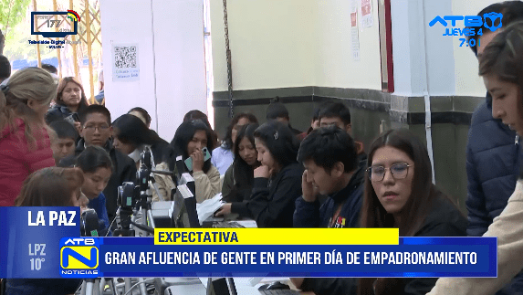La Paz, 04 de dic 2025 (ATB Digital)-. En La Paz, el empadronamiento registró una gran asistencia de jóvenes en su primer día. El proceso, que se extenderá hasta el 16 de diciembre, busca que más ciudadanos se registren para quedar habilitados para votar en las próximas elecciones