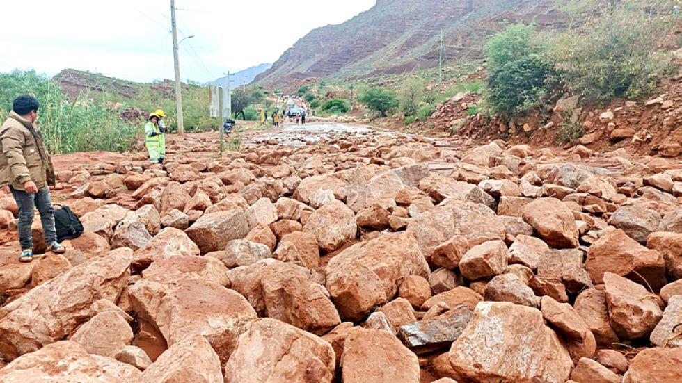 En la región de los Cintis, al promediar las 18:00 se desató una fuerte precipitación pluvial que provocó el deslizamiento de barro y piedras desde las montañas coloradas, a un par de kilómetros del centro poblado de Camargo. Según el reporte de Radio Camargo, el lodo de unos 10 a 20 centímetros de altura junto a enormes rocas cubrieron el asfalto de la carretera, dejando completamente bloqueada la vía y a decenas de motorizados varados en ambos lados del derrumbe. Así también se puede observar en fotografías y videos que circulan en las redes sociales.